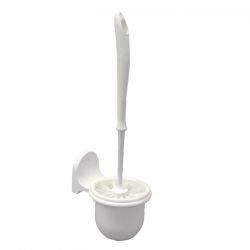 Kunststoff-Wandring und - Einsatz, weiß - stabilisiertes PP weiß, gewellt - Schrauben und Dübel zur Wandmontage - WC-Bürste mit Kunststoffgriff weiß